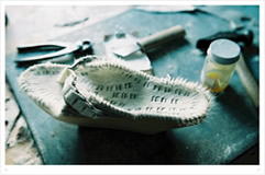 *2010年版が完成しました。縦型にデザインを一新した今作では写真も縦を意識したものになりました。表紙とオープニングイメージでは兵庫県姫路市にいまなお残る白なめし革製法の工場での「皮」から「革」へと素材の移りゆく生とともに、そこから発想し製作された靴を履く都会的な男女をモデルに撮影。本文では日本屈指の乗馬靴専門の工房で働く卒業生やイギリスで活動しながら一時帰国してくれた卒業生、アントワープでの評価も高いファッションデザイナーYUIMANAKAZATOさんや東京コレクション出品でも話題のwrittenafterwardsさんとの協同製靴プロジェクトも紹介しています。制作は学院長と技術ディレクターとの緻密な考察を経て、編集・構成・デザインから撮影・写真プリントまでを一貫して"写真とプリント社"チームで担当させていただきました。時代と対話しながら、より質の高いものづくりをめざして。(2009.6.19)